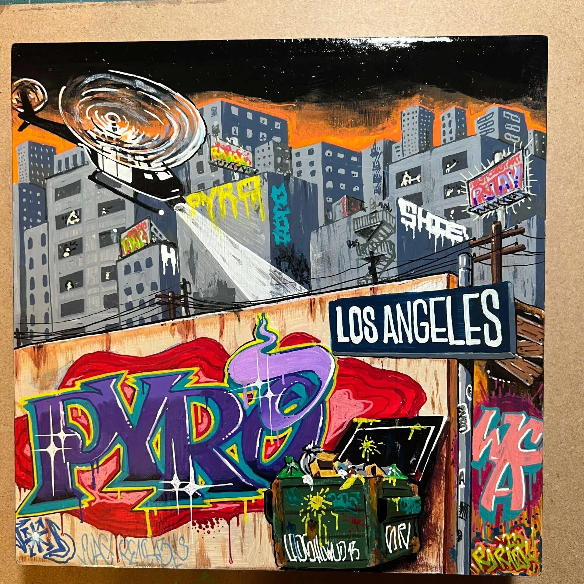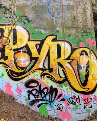 PYRO - A Los Angeles graffiti legend since the early 1980s, Pyro is a founding member of the West Coast Artists (WCA) crew and a pioneer of LA’s street art scene. His bold, vibrant work blends New York-style graffiti, West Coast lettering, and tattoo-inspired typography. Beyond the streets, Pyro is also an accomplished tattoo artist, carrying his art from walls to skin. With over four decades of experience, he continues to influence graffiti culture while staying true to his roots in personal expression.