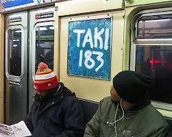 Taki 183 (real name Demetrios, a Greek-American kid from Washington Heights, NYC) is widely credited as one of the first graffiti writers to gain national fame. Back in the late 1960s and early 1970s, he started writing his tag — “TAKI 183” — all over New York City. The “183” came from 183rd Street, where he lived.